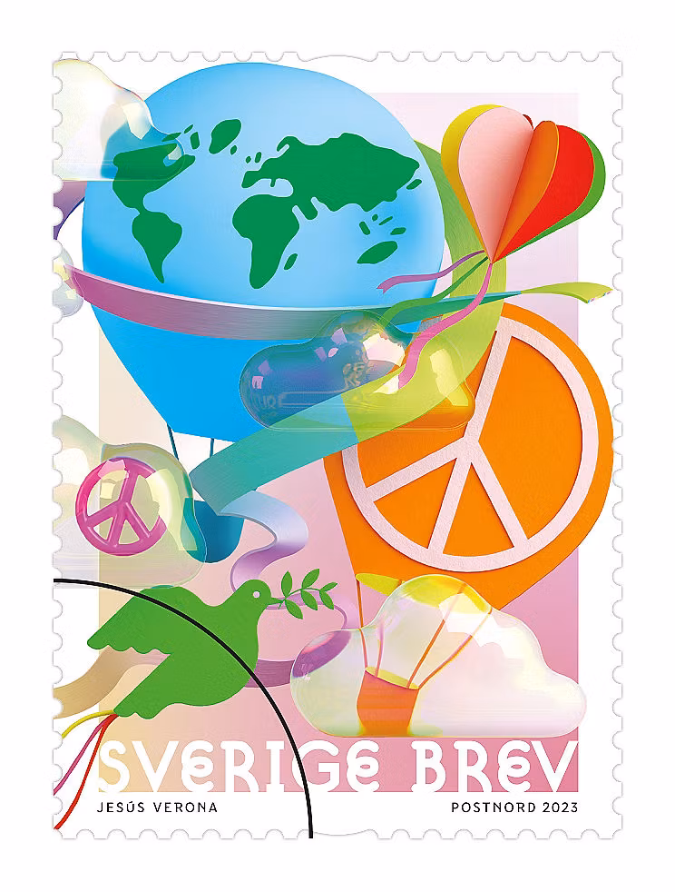 Facit nummer 3481 Blå luftballong + fredssymbol