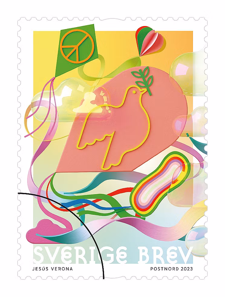 Facit nummer 3477, duva + fredssymbol